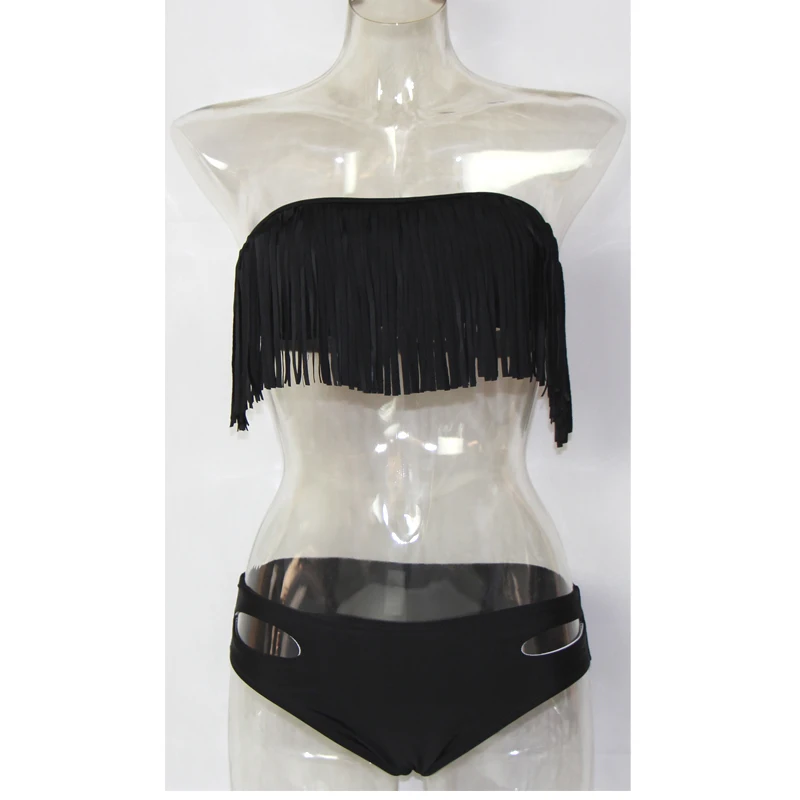 .Gallery about Bandeau Bikinis Set Hot Sale Women 6 Colors Sexy Vintage Tassel Biquini Summer Beachwear High Quality Swimsuit Push Up